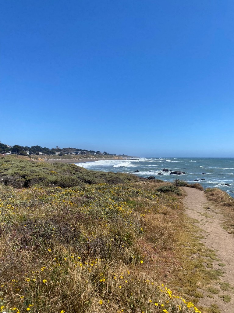 What always strikes me about time spent in the sun is how blue it is. Sunshine, in my mind, is a bright and blazing yellow. When I try to illustrate it with words I reach for butter colors, bursts of citrusy lemon, maybe something akin to mustard if we’re talking sunshine in the fall. But in photographs, and in life, I really feel like sunshine turns out to be very blue. Sunshine is a cloudless azure sky, a rolling turqouise wave, cold clear splashes in a cobalt snowmelt river. And after the soggiest of Mays, we spent four days savoring an almost intoxicating amount of it, whether exploring Morro Bay at sunset, killing time and grabbing iced coffee in Morgan Hill, or driving up Highway 1 near Ragged Point with the windows down.